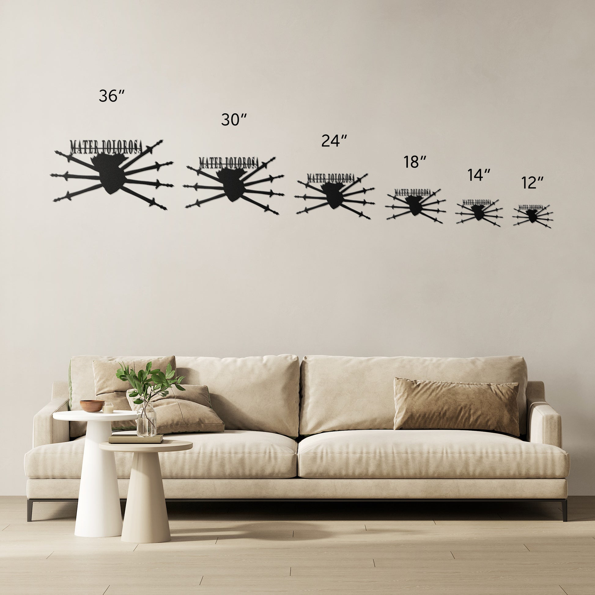 • 6 Sizes - 36", 30", 24", 18", 14", 12" *Selected size is based on the maximum height or width of the sign depending on physical orientation